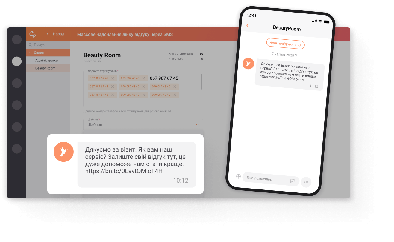 З SMS-розсилкою ви можете збирати відгуки без зусиль. Одразу після покупки або візиту клієнта, щоб формувати лояльність та вдосконалювати сервіс.