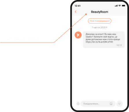 З SMS-розсилкою ви можете збирати відгуки без зусиль. Одразу після покупки або візиту клієнта, щоб формувати лояльність та вдосконалювати сервіс.