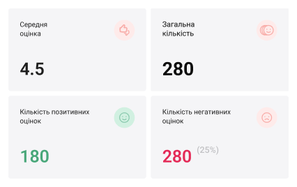Ви бачите скільки клієнтів перейшли за посиланням і залишили відгук. А також кількість позитивних та негативних оцінок — усе для чіткого розуміння якості сервісу.